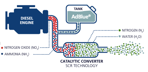 AdBlue adalah solusi cair yang digunakan untuk mengurangi polusi udara yang dihasilkan oleh mesin diesel. Dibuat dengan 32.5% urea dan 67.5% air yang telah diionisasi.
